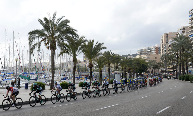 Peloton wielrenners tijdens de wielerronde op Mallorca