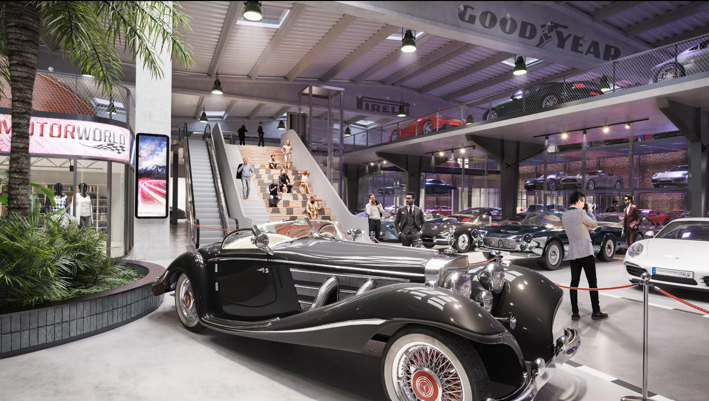 Motorworld is geen traditioneel automuseum. Het is een dynamische ontmoetingsplek waar klassieke auto’s, exclusieve sportwagens, motorfietsen én zelfs jachten worden getoond én verkocht. Van een zeldzame Jaguar E-Type tot hypermoderne Ferrari’s en Aston Martins – wie van motoren houdt, is hier aan het juiste adres.