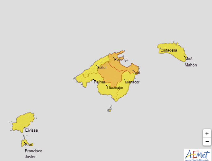 Leestijd: < 1 minuutHet Spaanse meteorologische instituut Aemet heeft voor zondag 24 juli de code oranje afgegeven voor de Balearische eilanden.